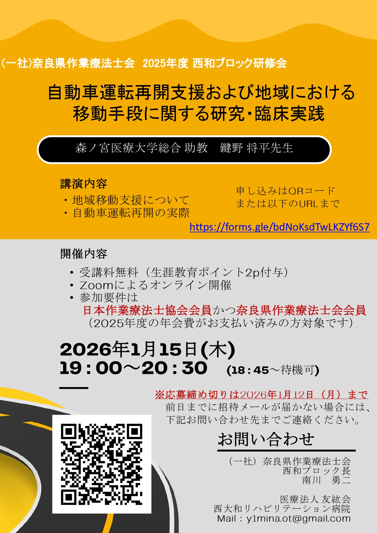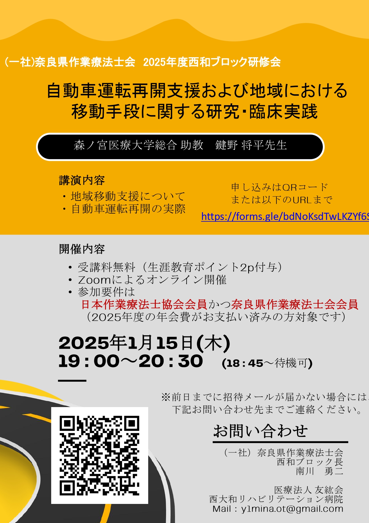 西和ブロック研修会「自動車運転再開支援および地域における 移動手段に関する研究・臨床実践」