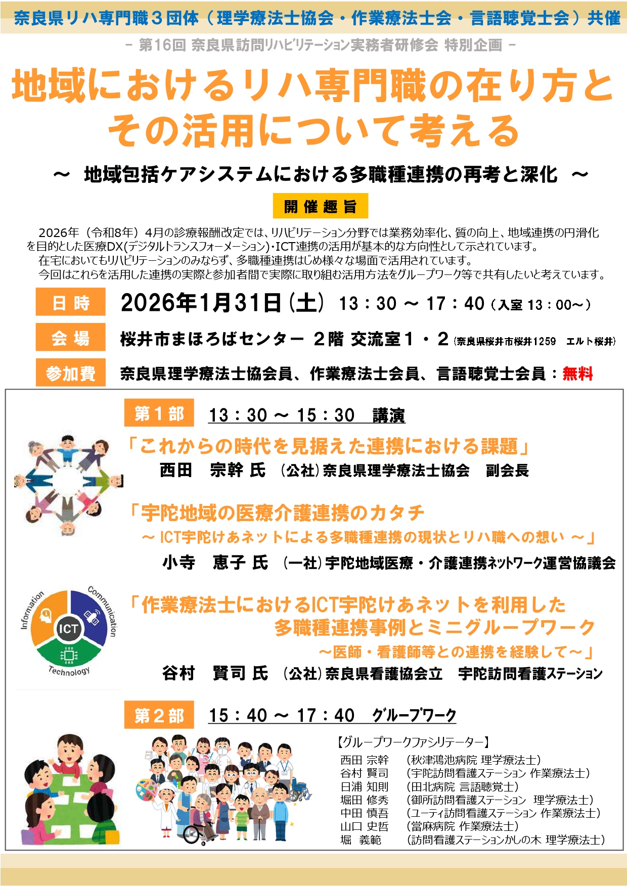 – 第16回 奈良県訪問リハビリテーション実務者研修会 特別企画 – 地域におけるリハ専門職の在り方とその活用について考える