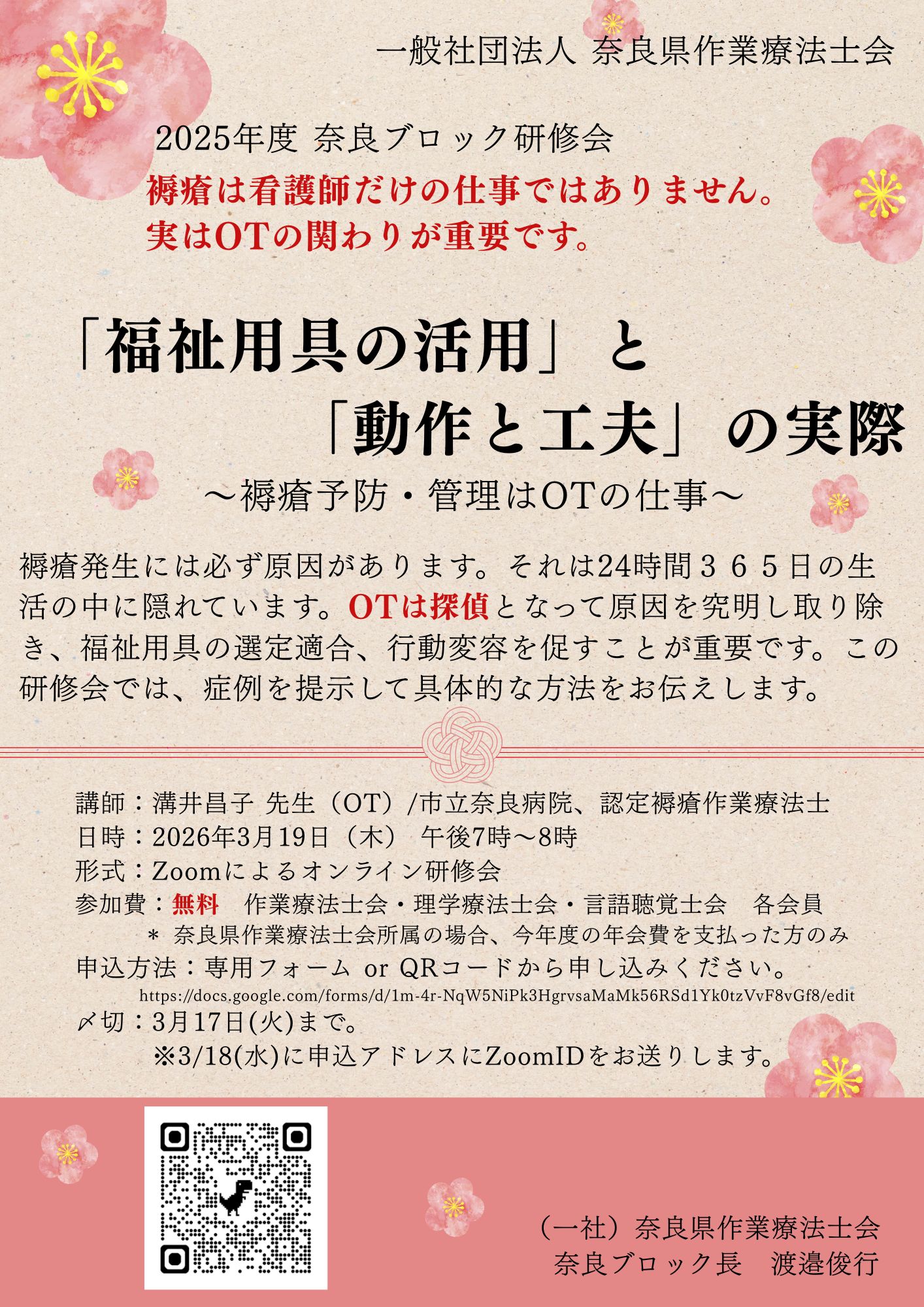 奈良ブロック研修会「福祉用具の活用」と「動作と工夫」の実際〜褥瘡予防・管理はOTの仕事〜